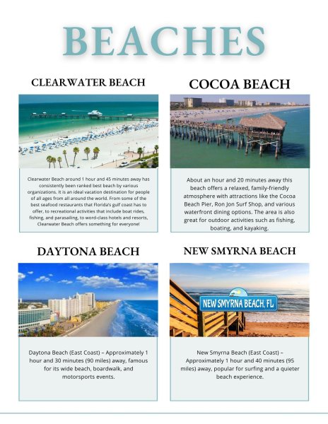 Laura’s Villa is the perfect vacation for families that want to experience all of the Orlando’s theme parks and close to the beaches on either Coast. The clubhouse has a concierge services to secure Disney tickets for your family needs to all of the theme parks.